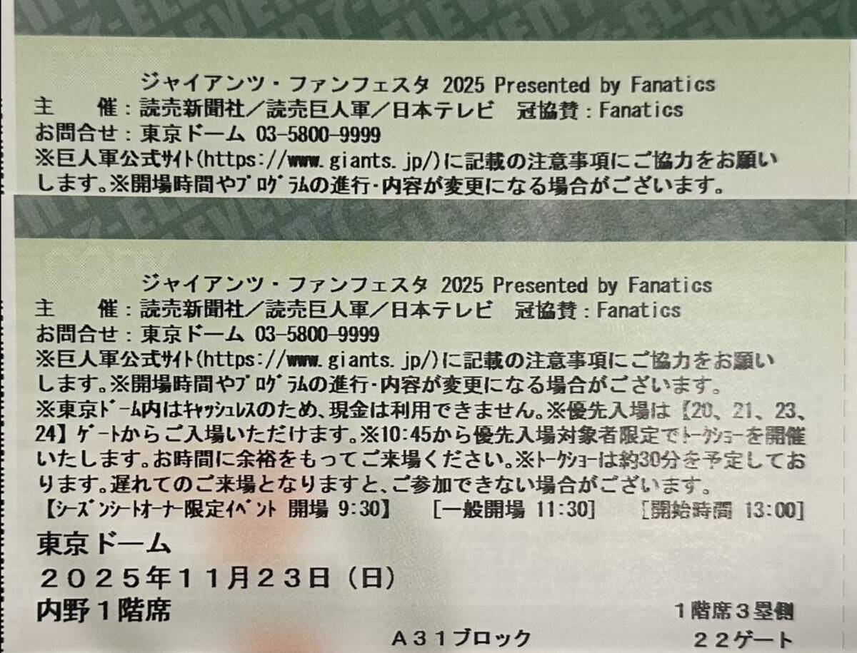 - ジャイアンツ・ファンフェスタ2025 Presented by Fanaticsシーズンシートオーナー用チケット