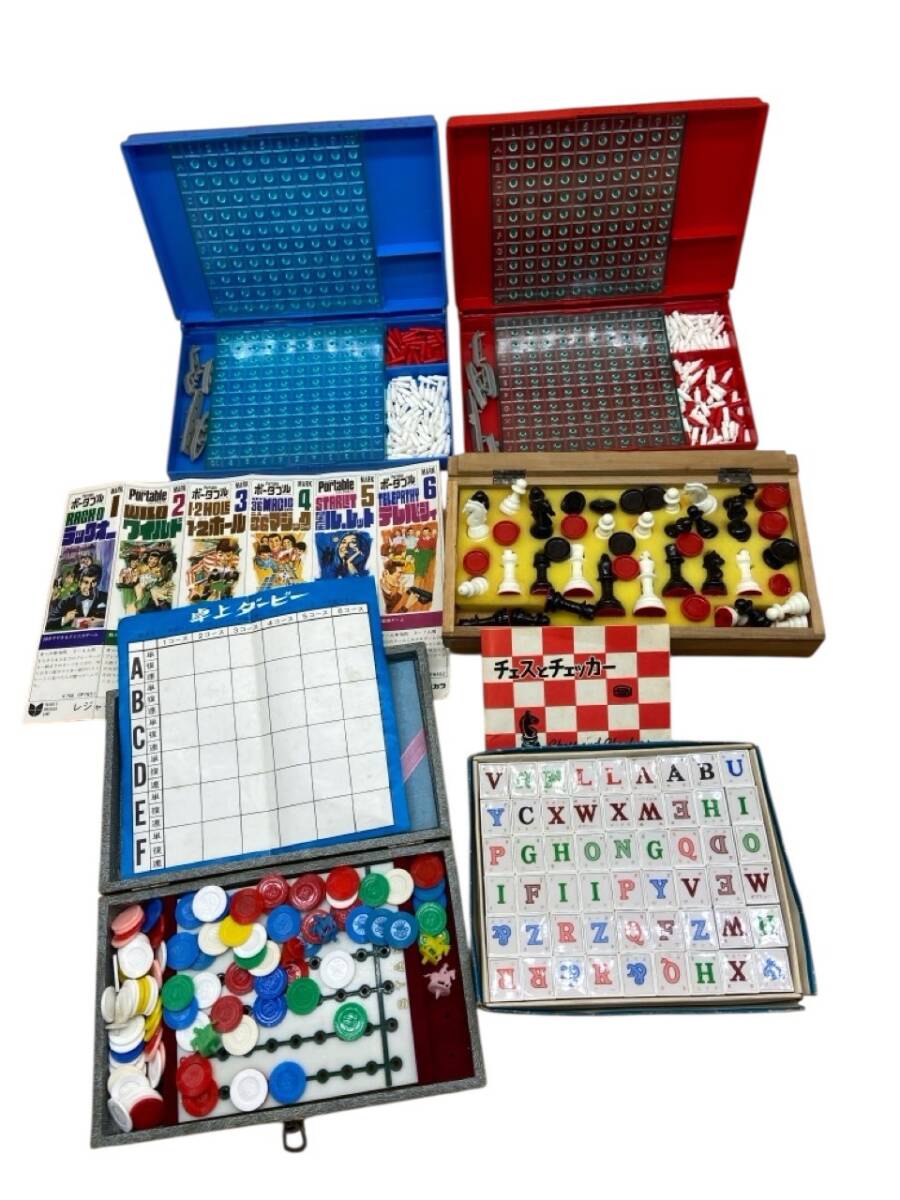 > せ250[中古品]昭和レトロ ボードゲーム 現状品 まとめて ABCゲーム 卓上ダービー チェスとチェッカー レーダー作戦ゲーム 赤・青