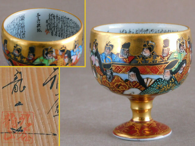- 中田 龍山 三十六歌仙図 細字 酒盃 高台杯