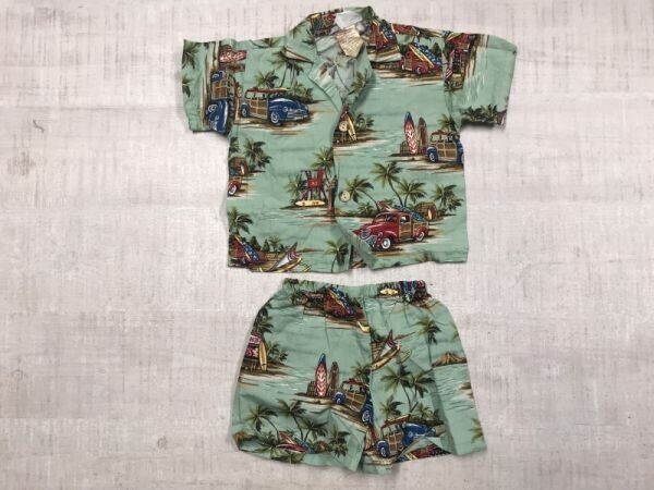 > USA製 LORD of Hawaii アメカジ サーフ リゾート 総柄 アロハシャツ×ハーフパンツ 上下セットアップ キッズ 6Month 6ヶ月 緑