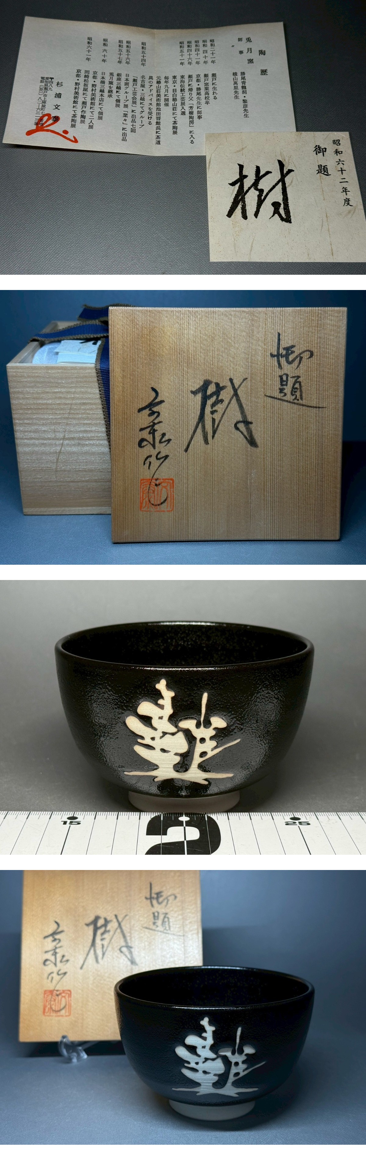 - 杉浦文泰 御題樹茶碗 黒楽茶碗 骨董 置物 飾物 日本伝統工芸品 芸術 古美術 時代物 落款 在銘 作家 茶道具 煎茶道具 食器44