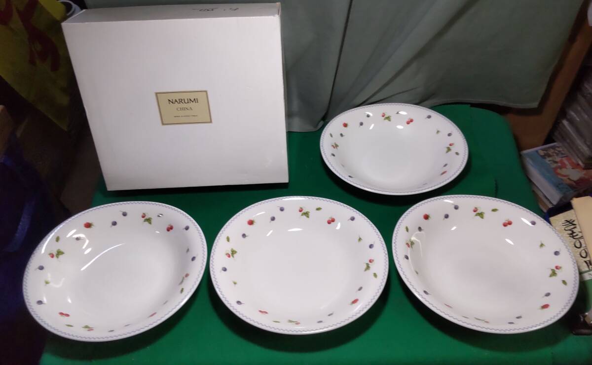 - 【保管品】NARUMI china ナルミ チャイナ カレー&パスタ 4枚 セット/スープ/シチュー/深皿/鳴海製陶/金彩/ベリー 柄/食器/レトロ/●5431/根