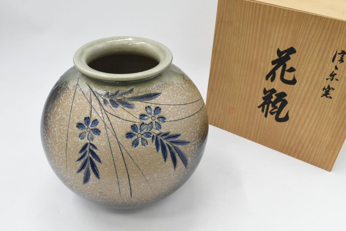- (1285L 1030H9) 1円~ 信楽焼 信京窯 文山窯 三彩 水晶花 花瓶 共箱 花器 花入 壺 置物 フラワーベース 陶器 伝統工芸品