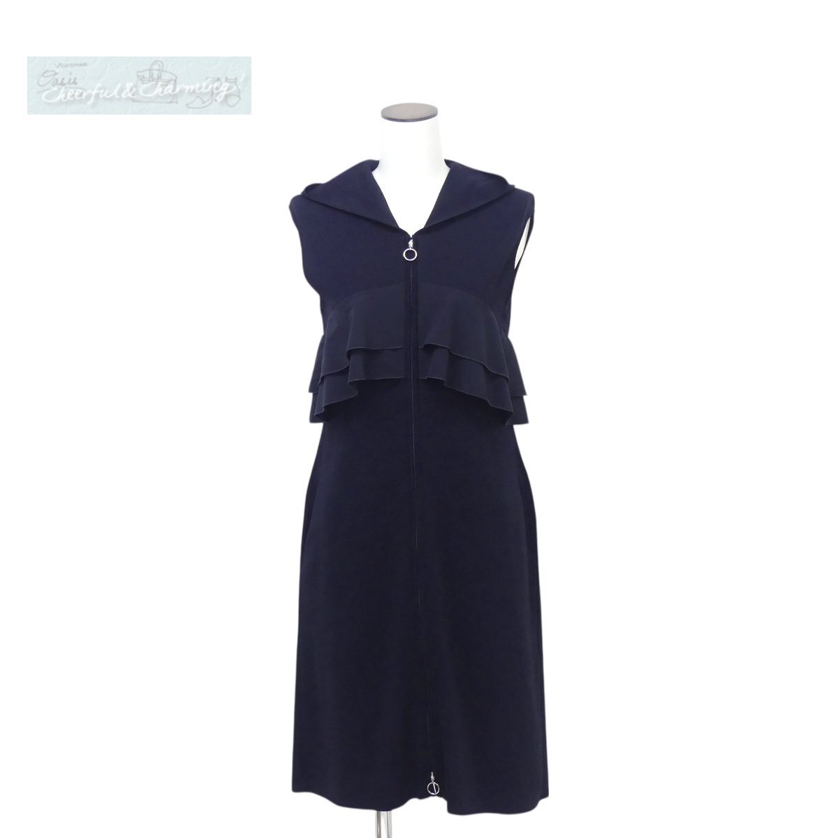 > Rene フリルフーディワンピース 34 ネイビー アセテートBLEND×ポリエステルBLEND 6712100