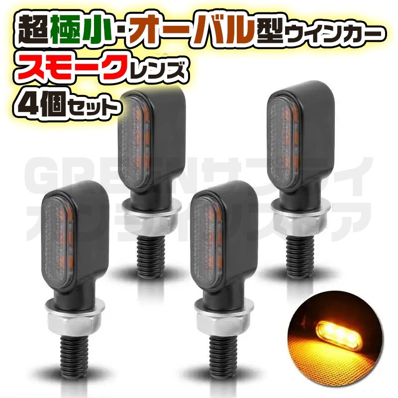 - マイクロ ウインカー バイク バレット スモーク 4個 LED 小型 オーバル型