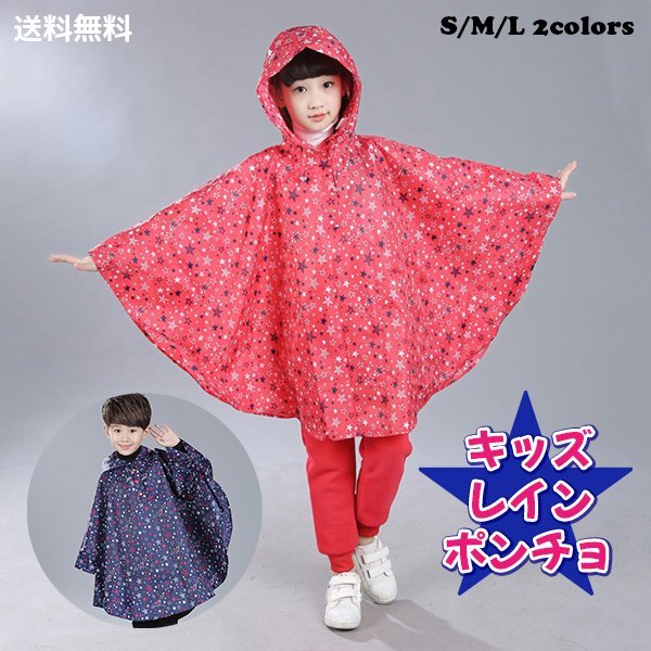 - 送料無料 子供用 スター レインポンチョ 収納ポーチ付き 選べるサイズ&カラー 星柄 キッズレインコート 自転車 通学 レジャー レインウェア