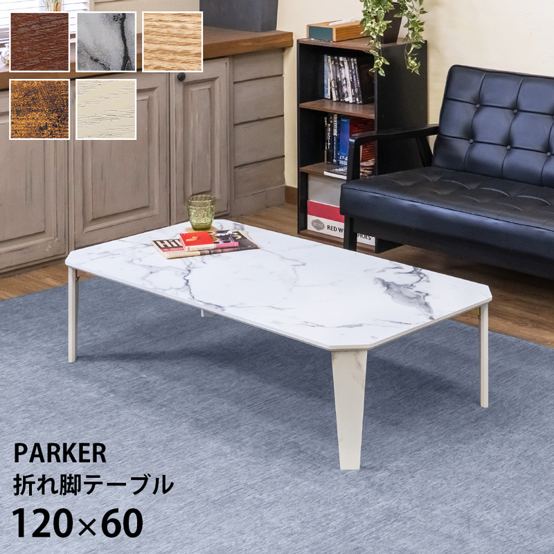 - 座卓 ローテーブル 折りたたみ テーブル 木製 折れ脚 幅120cm 奥行60cm 大理石調 ヴィンテージ調 SH-23 マーブルホワイト(MWH)