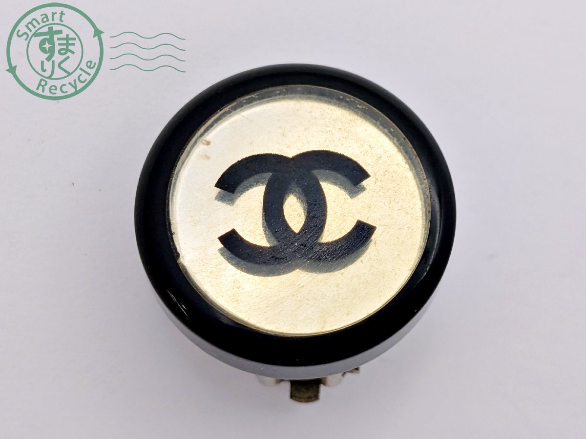 - BJ0608956 ★ CHANEL シャネル 01 P フランス製 ミラー イヤリング 片耳のみ ラウンド ココマーク ブラック 黒 アクセサリー 中古