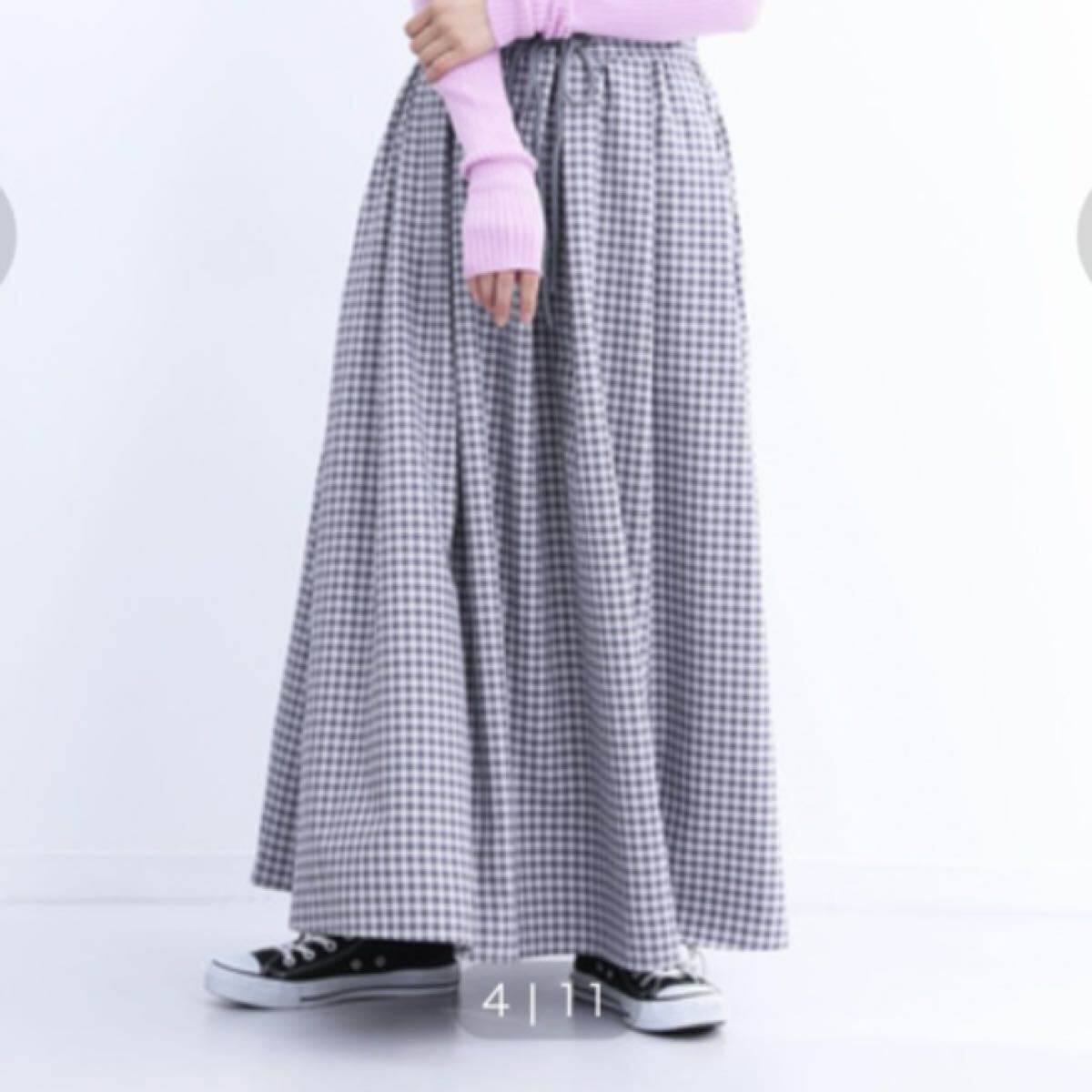 > ドロストタックフレアスカート ロングスカート 背面ウエストゴム グレーチェック ギンガムチェック マキシ丈スカート マキシスカート
