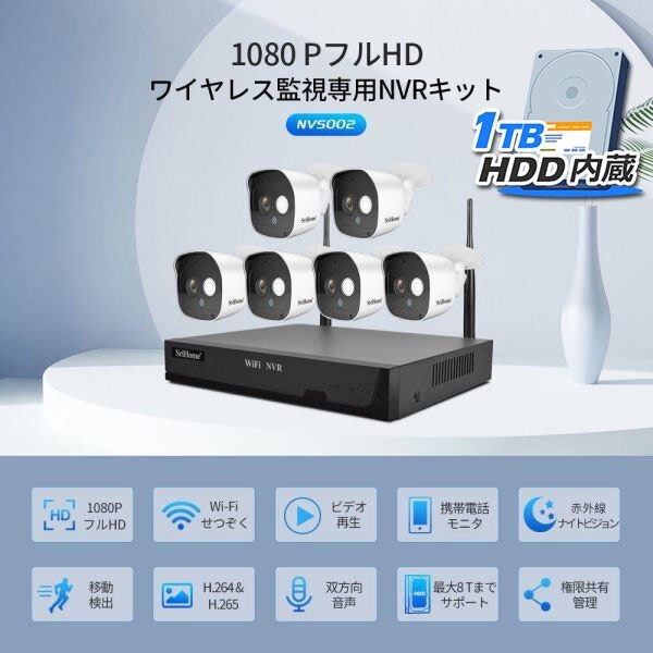 - ★30日間保証付き★防犯カメラ6台セット 1TB HDD内蔵 監視カメラ 屋外 IP66防水 監視カメラ 遠隔監視&動体検知 暗視撮影