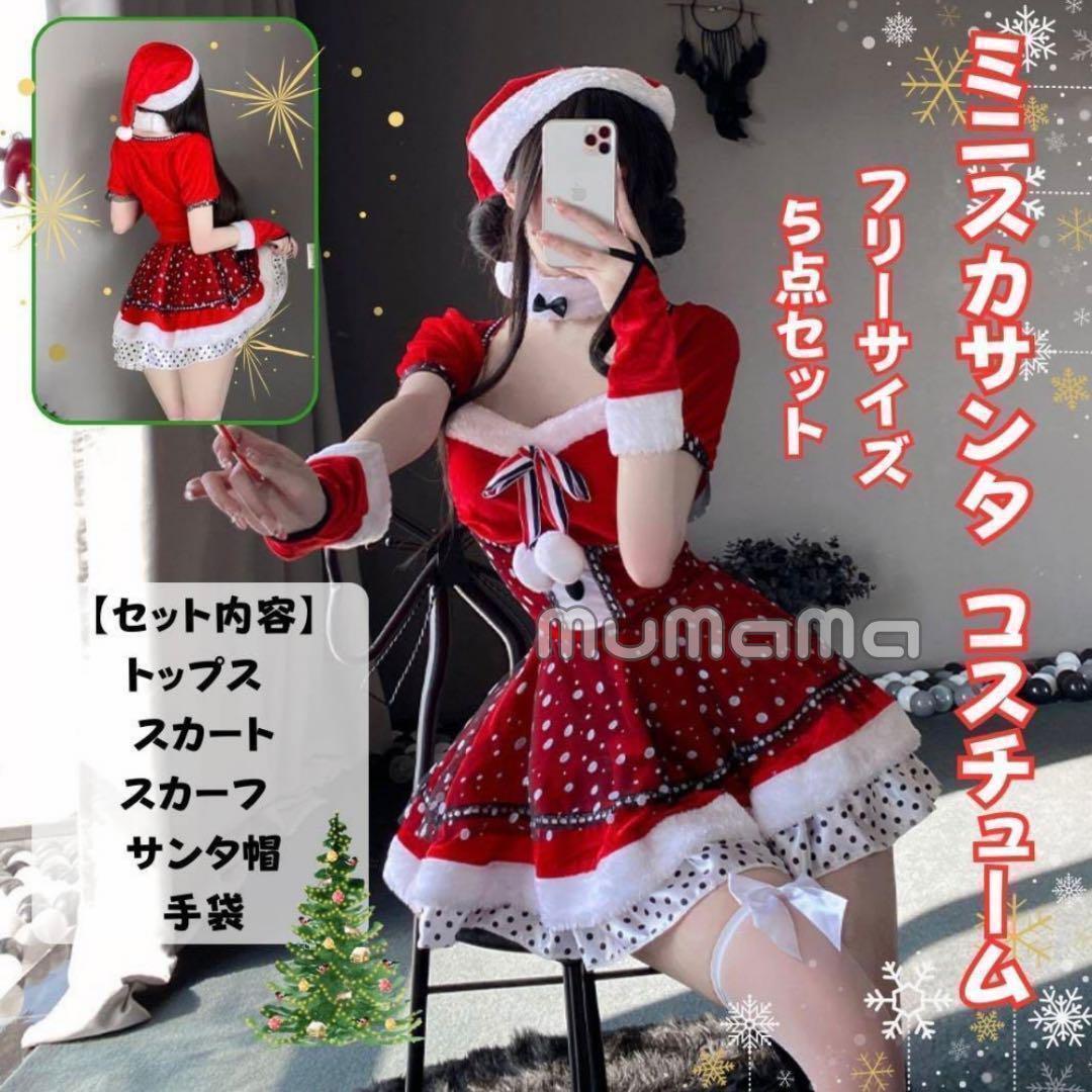 - ミニサンタ コスチューム 5点セット クリスマス フリーサイズ