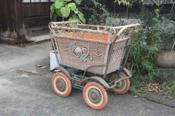 - 【蔵出し】★美品 レトロ『古い籐製の乳母車』★検:(初だし/幼児用/ラタン/ベビーカー/ビンテージ/アンティーク/当時物)70925F