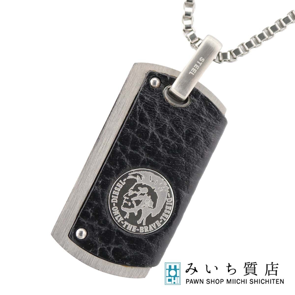 - 質屋 1円~ DIESEL ディーゼル ネックレス ONLY THE BRAVE アクセサリー ブラック×シルバーカラー 約28.8g 箱有 25k921-8 みいち質店