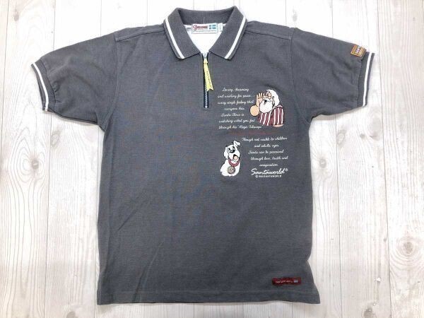 > サンタワールド SANTAWORLD レトロ ゴルフ トラッド ハーフジップ 鹿の子 半袖ポロシャツ メンズ コットン混合 S グレー