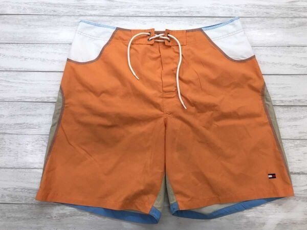 > トミーヒルフィガー TOMMY HILFIGER アメカジ サーフ 配色切替 ハーフ イージーショート スイムパンツ ボトムス メンズ L オレンジ