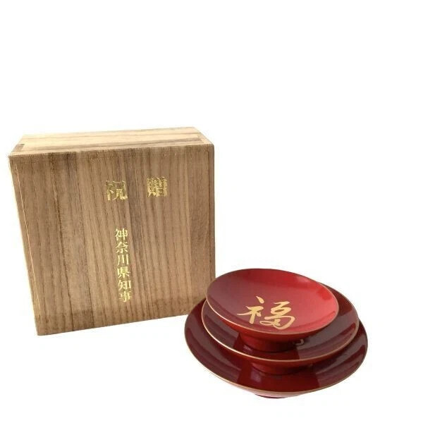 - 【未使用】漆盃 3種セット 神奈川県知事より贈呈品 高級 酒器 木製 漆器 盃 伝統工芸 記念品 希少