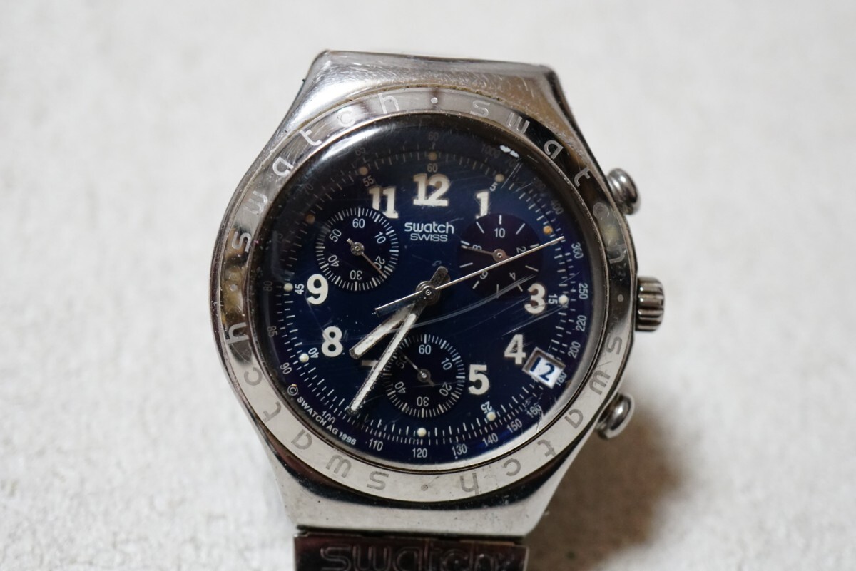 > F2033 SWATCH/スウォッチ IRONY クロノグラフ SWISS メンズ 腕時計 アクセサリー ヴィンテージ ブランド クォーツ 不動品 訳あり 傷あり