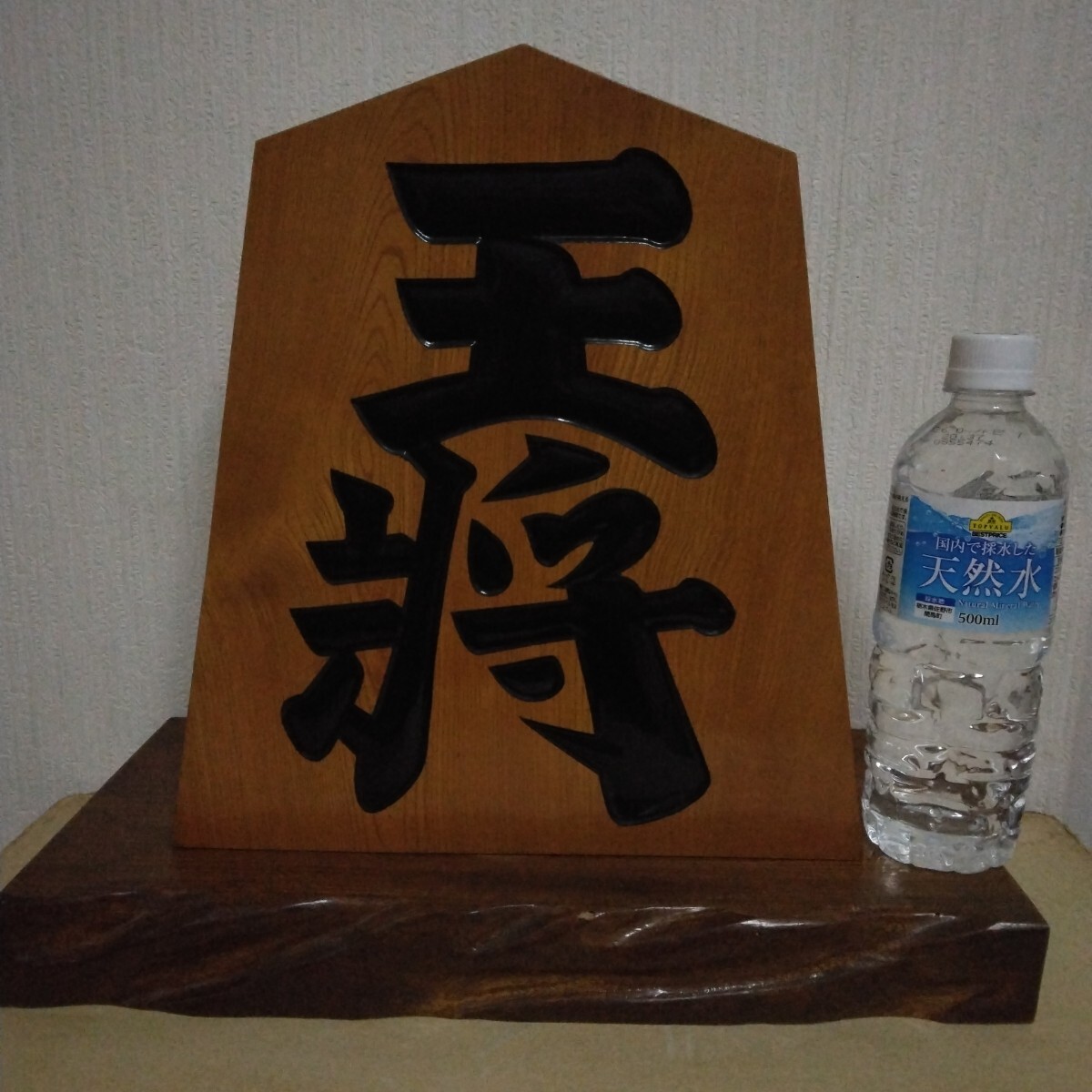 - 【飾り駒】30センチ 王将 天元作 銘あり 木製 置物 オブジェ 置台付