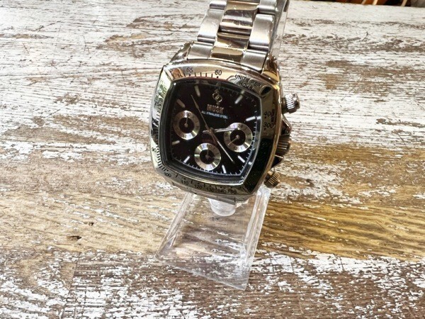 > MUSK/ムスク スクエアフェイス クロノグラフ ブラック文字盤 ステンレス時計 腕時計 メンズ ブラック×シルバー メンズ腕時計