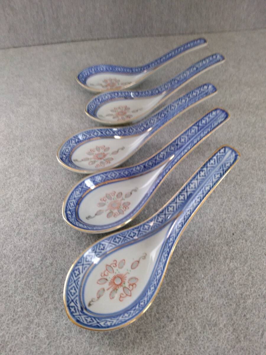 > 中国景徳鎮 レンゲ 古陶磁 中国美術工芸 突起あり観賞用鑑賞用 アンティーク 5本ぐみ