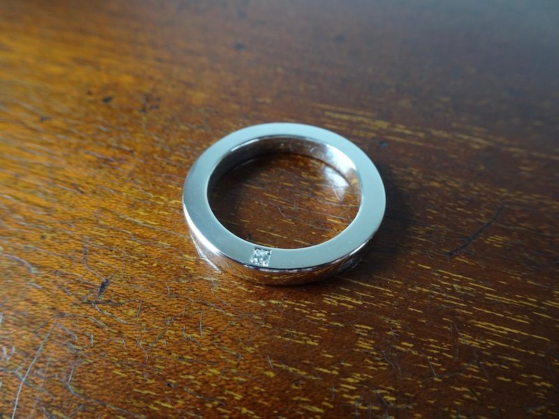 - 仁尾彫金『一つ星ダイヤ、幅3mm厚み3ミリ、平打リング』ハンドメイド395