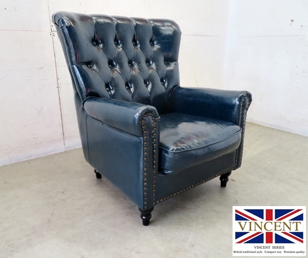 > ■P266■展示品■VINCENT/ヴィンセント■英国デザイン■ヴィンテージスタイル■1人掛けソファ■鋲打ち■クラシック■英国伝統■ハイバック