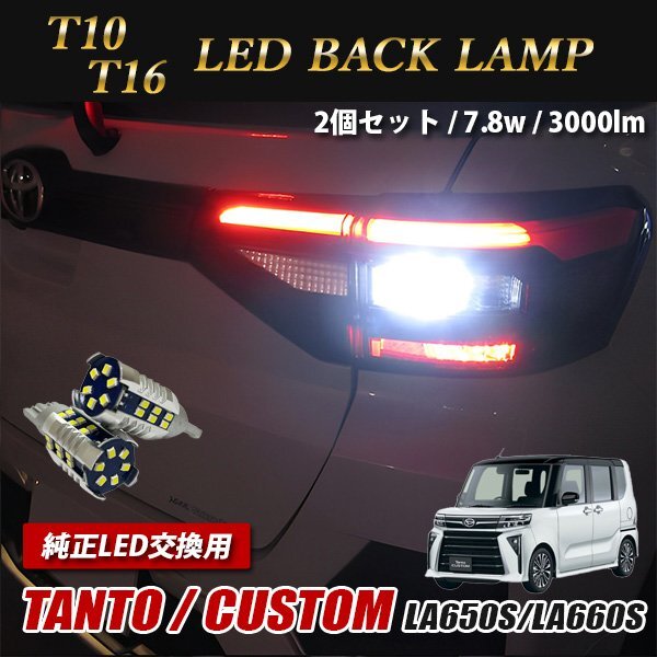 - タント タントカスタム LA650S LA660S バックランプ T10 T16 LED 30連 ホワイト バルブ 爆光 2個セット 送料無料