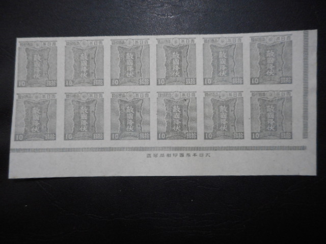 - 極美品!第3次昭和 勅額10銭12枚ブロック(銘版付き)NH