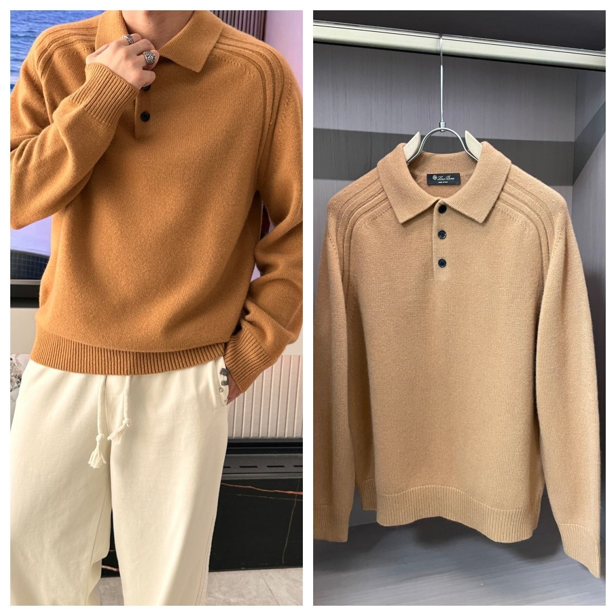 - キャメルM【送料無料】Loro Pianaロロピアーナメンズ ウール ポロニットセーター、クラシックデザイン、秋冬