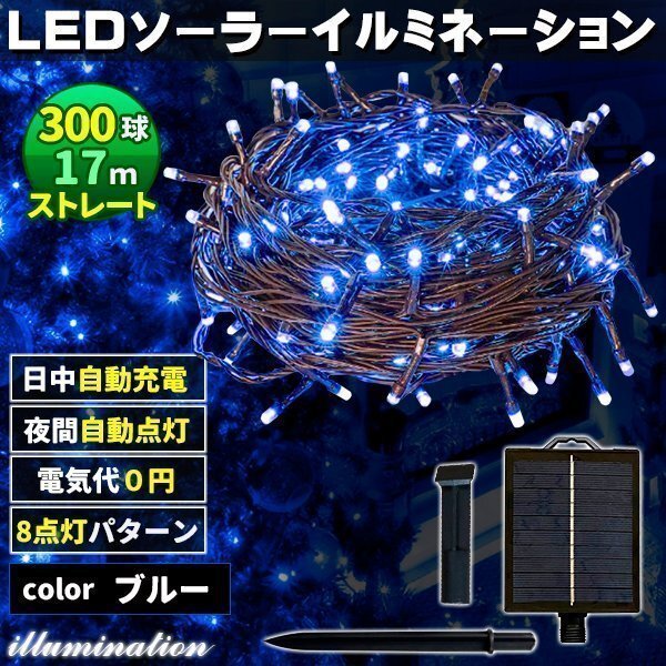 - ソーラー イルミネーション 屋外 クリスマス ストレート 屋外用 イルミネーションライト 300球 ブルー