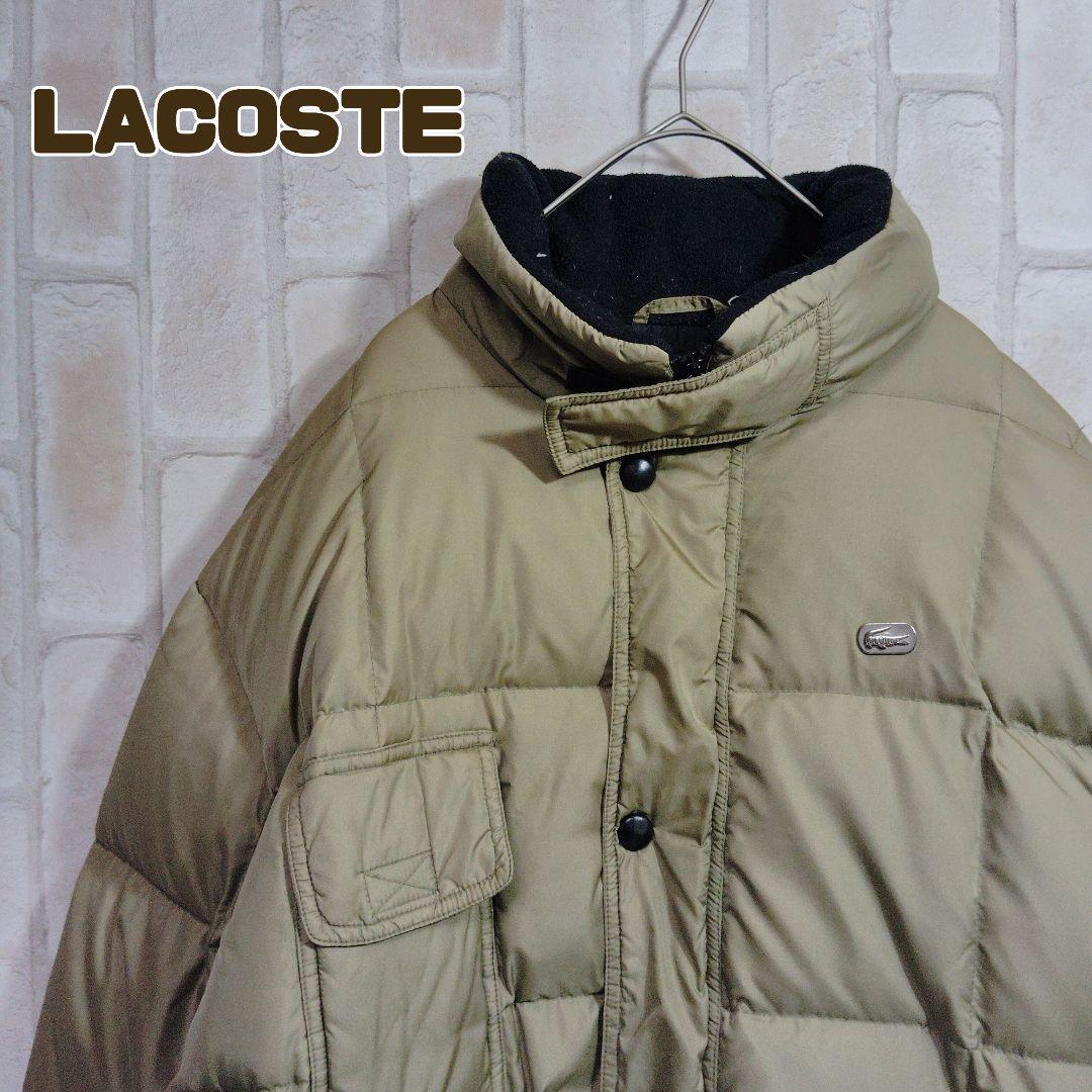 - ラコステ ダウンジャケット ベージュ フード収納 メタルロゴ