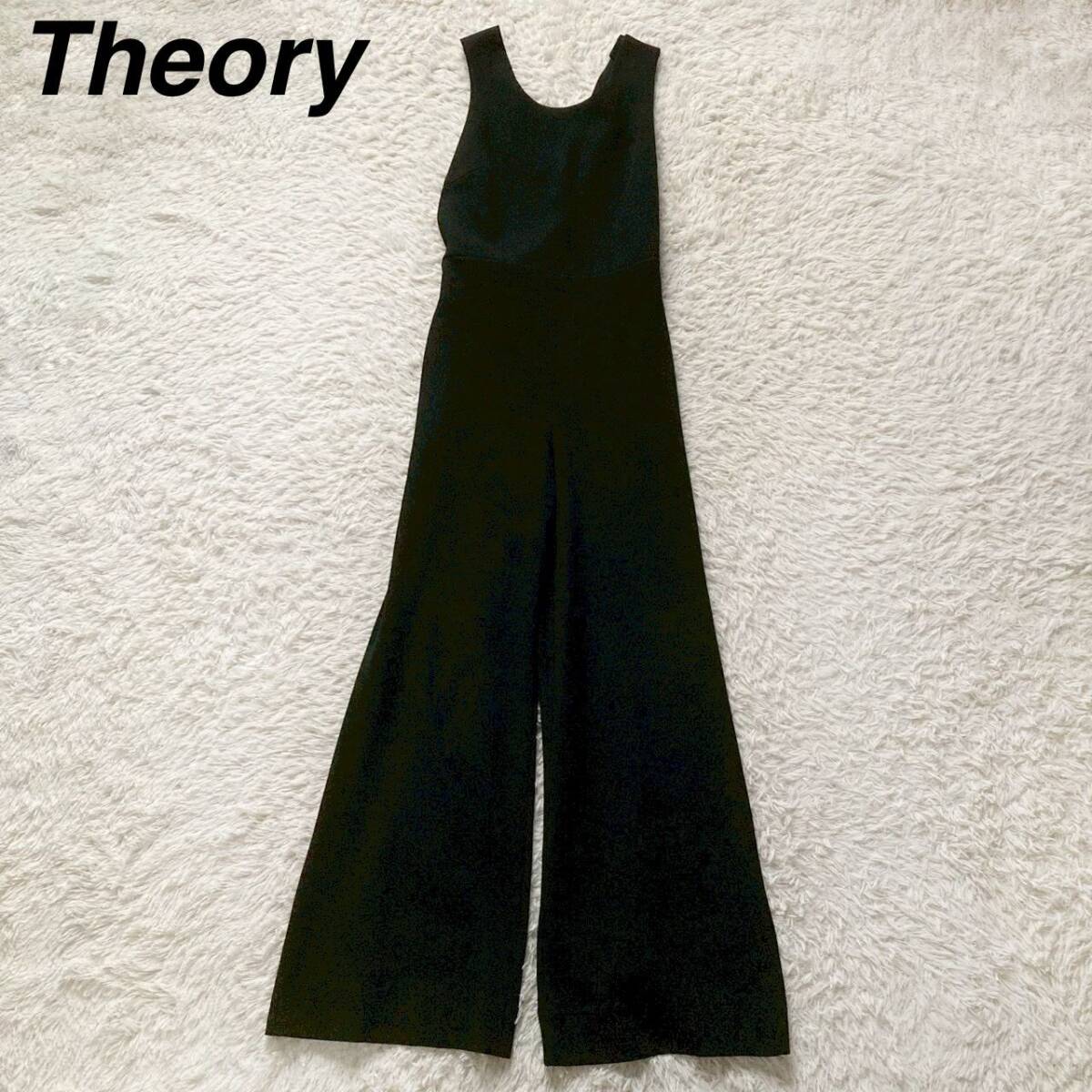 > 美品 日本製 Theory セオリー クロスバックジャンプスーツ サロペット 黒 ブラック サイズ0 綿ナイロン VIRGIL.JERSEY素材 オケージョン