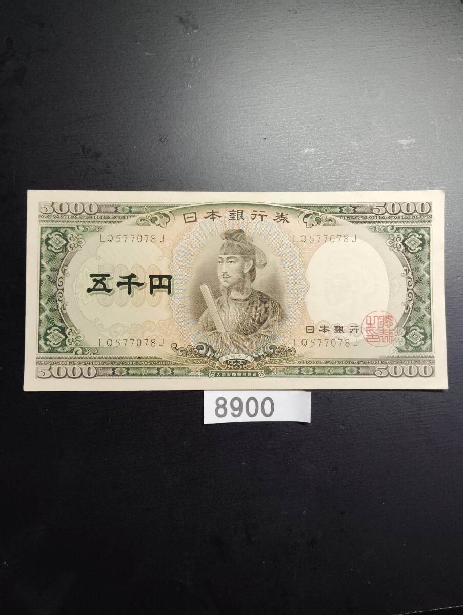 - 8900 未使用 ピン札シミ焼け無し 日本銀行券 聖徳太子 五千円 旧紙幣 大蔵省印刷局製造