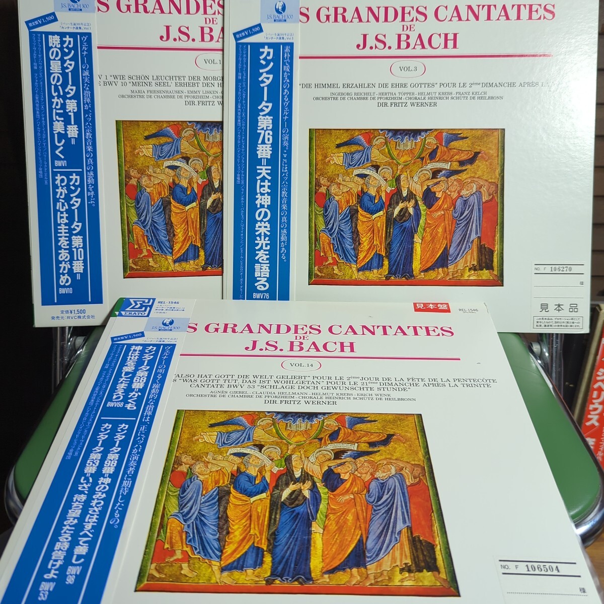 > 3枚まとめて フリッツ・ヴェルナー指揮/バッハ/教会カンタータ 第1,76、68、98、53番/プフォルツハイム室内管/Erato/白ラベル