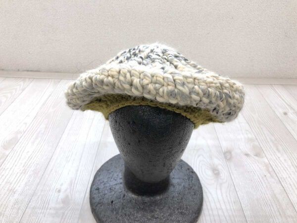 > レトロ オールド トラッド メランジ チャンキーヤーン 太糸 配色切替 ジャガード ニットベレー帽 レディース アイボリー/カーキ