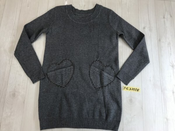- RENA ULT. レディース 毛綿 ハートビジューポケット ニット チュニック 9号 グレー