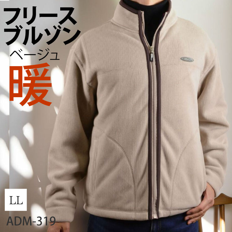 - 裏ボア 細コール仕様 スタンドカラー フリース ブルゾン ベージュ LLサイズ●ADM-319-BE-LL●新品 メンズ ジャンパー コーデュロイ 保温 Z1