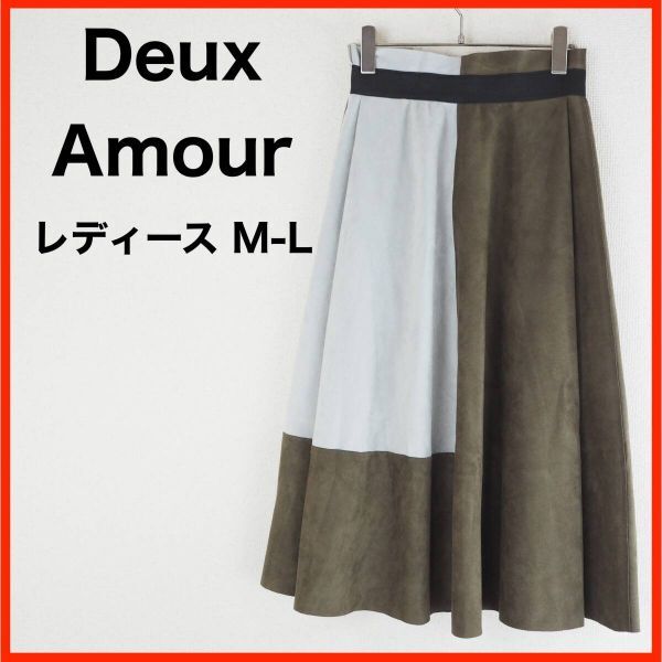 > A3793★美品★Deux Amour*レディース*ロングフレアスカート*M-L*切り替え*カーキブラウン