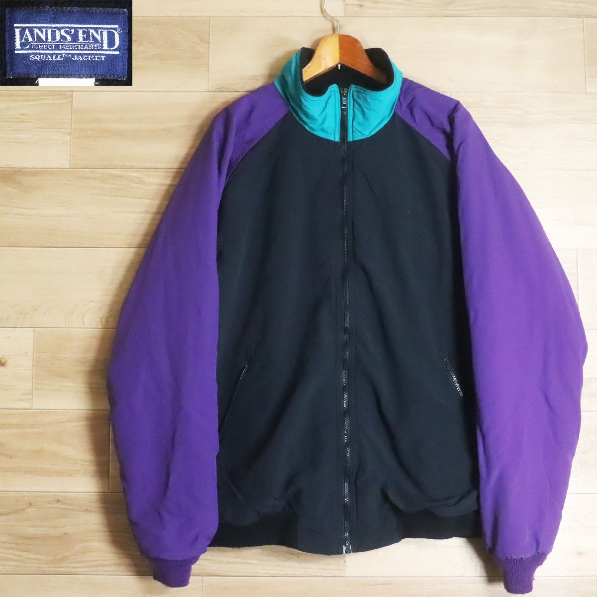 - G5S/R4.29-1 USA製 LANDS'END ランズエンド ナイロンジャケット 裏フリース ジャンパー ブルゾン ロゴ刺繍 メンズ Lサイズ