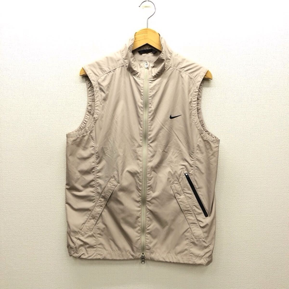 > 【GK001】NIKE GOLF Mサイズ ウィンドブレーカー ベージュ 薄地 ベスト ダブルジップ ブランド古着 ナイキゴルフ スポーツウェア 送料無料