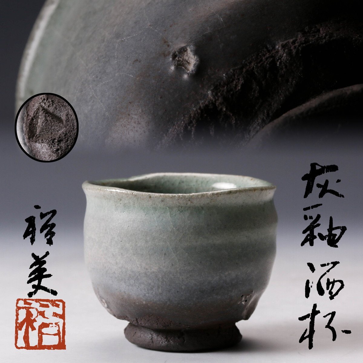 > 【佳香】七代 加藤幸兵衛(加藤裕英) 灰釉酒杯 共箱 共布 栞 本物保証