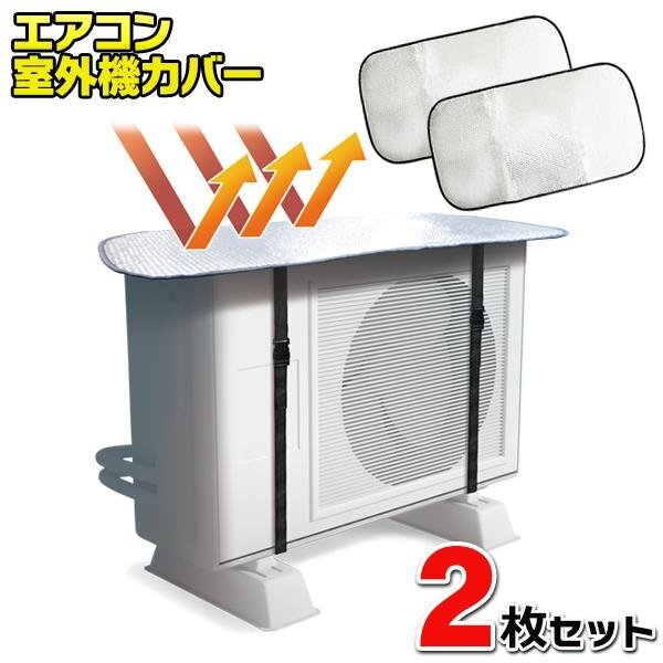 - エアコン 室外機カバー 2枚組セット 節電対策 アルミ構造 遮熱 太陽光シャットアウト 省エネ 屋外用 送料無料 250T◇ カバーA×2枚