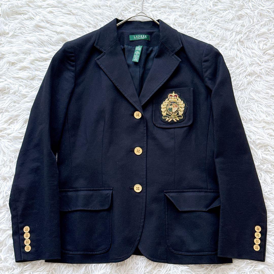 > LAUREN RALPH LAUREN ローレンラルフローレン 金ボタン エンブレム ジャケット 紺ブレ Mサイズ相 ネイビー テーラード ブレザー