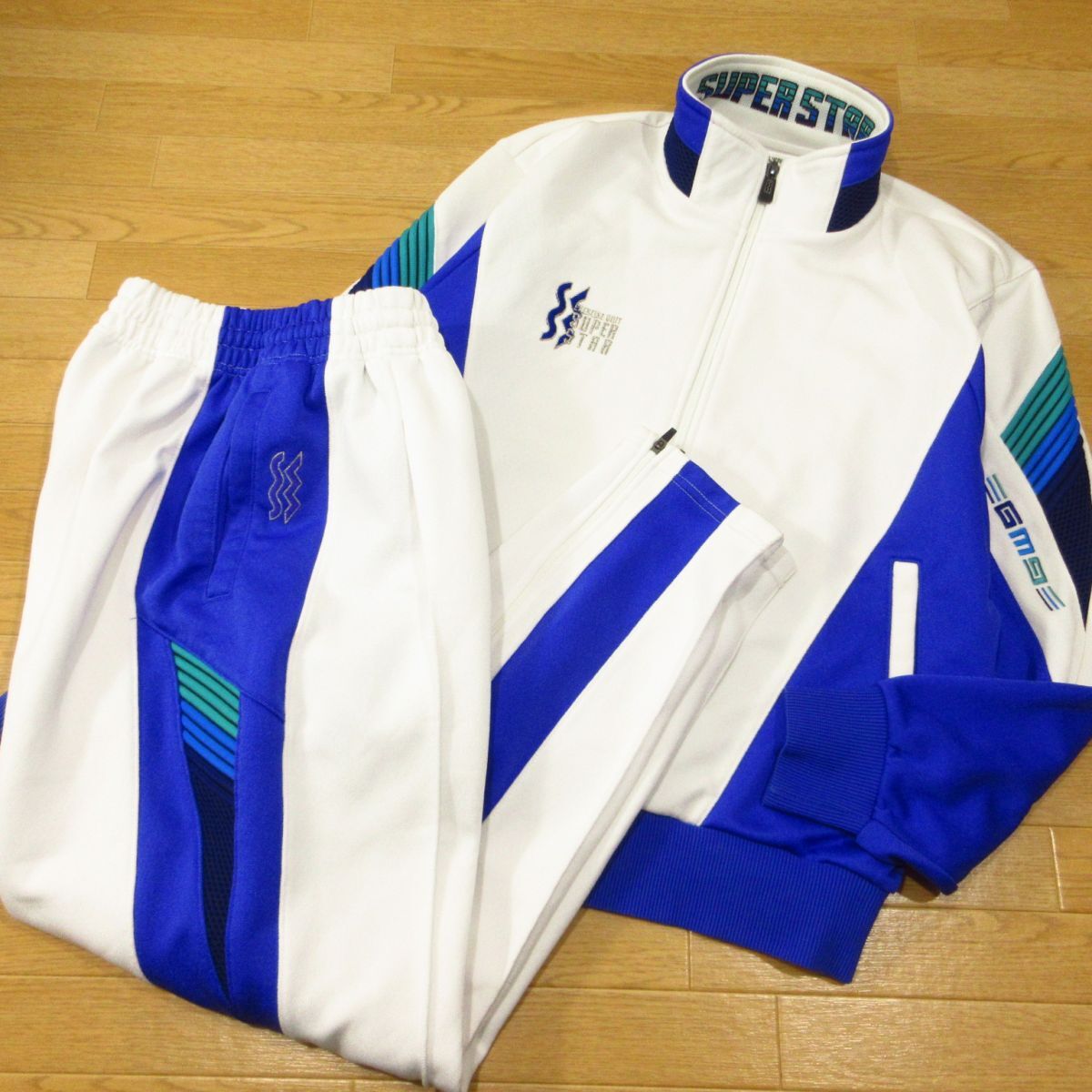 > ◎使用少々 90s!MIZUNO Super Star ミズノ オールド 90年代 M 上下セット セットアップ ジャージ ヴィンテージ メンズ 白x青◆BA3875