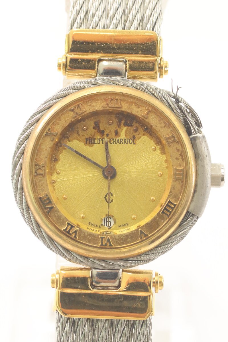 > 【ジャンク】PHILIPPE CHARRIOL フィリップシャリオール ケルティック ワイヤーブレス クォーツ デイト 腕時計 3959-HA