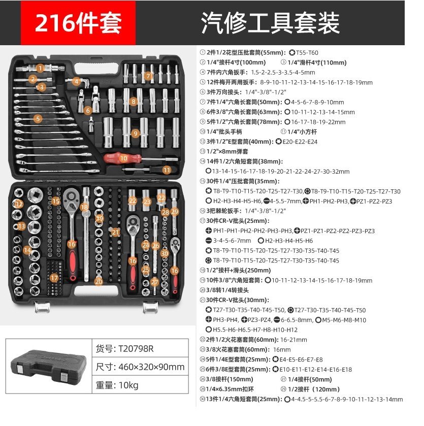 - 216件自動車修理工具車載セットソケットレンチ組み合わせ修理工具箱全セット修理工具
