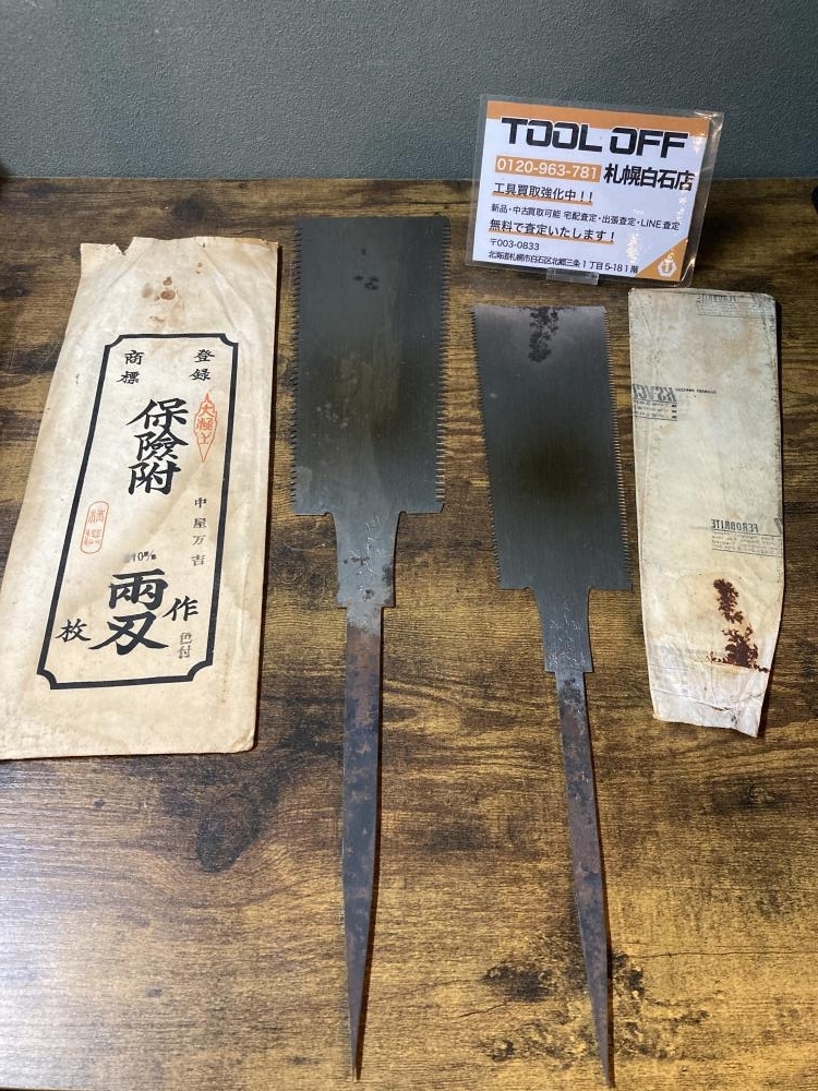 > 025♪おすすめ品♪中屋万吉 両刃鋸 刃のみ 2枚組 刃渡り約210mm・250mm 若干さびあり・片方記名彫り込みあり