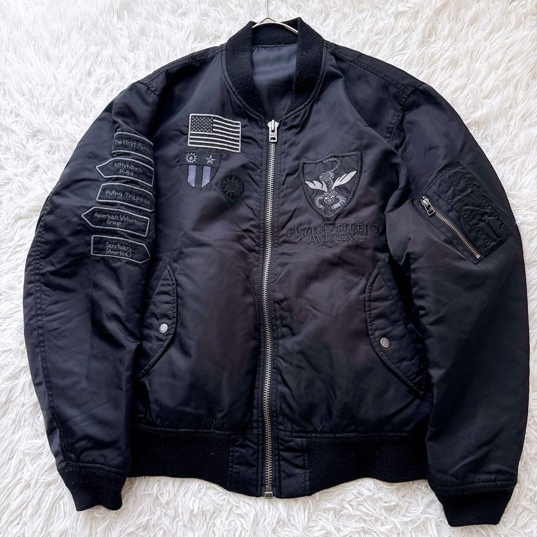 - 希少2XLサイズ AVIREX アヴィレックス MA-1 フライトジャケット フライングタイガー 星条旗 ブルゾン ミリタリー アウター ブラック 黒