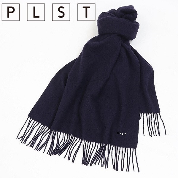 - 【HA931】◆PLST プラステ ロゴ刺繍 ウール 大判 ストール マフラー 紺 ネイビー