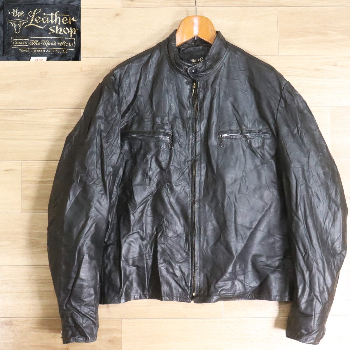 - K4O/Y6.5-5 70s Sears シアーズ 本革 シングルライダース レザージャケット SERVALジッパー 42 ヴィンテージ アメリカ古着